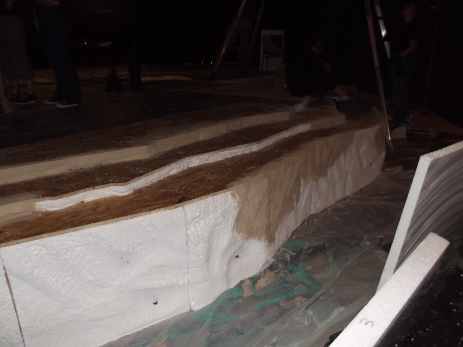 I helped paint the eagle on, paint the rings and paint the 'rock' it's mounted on with the same technique as we did on the front of the stage.